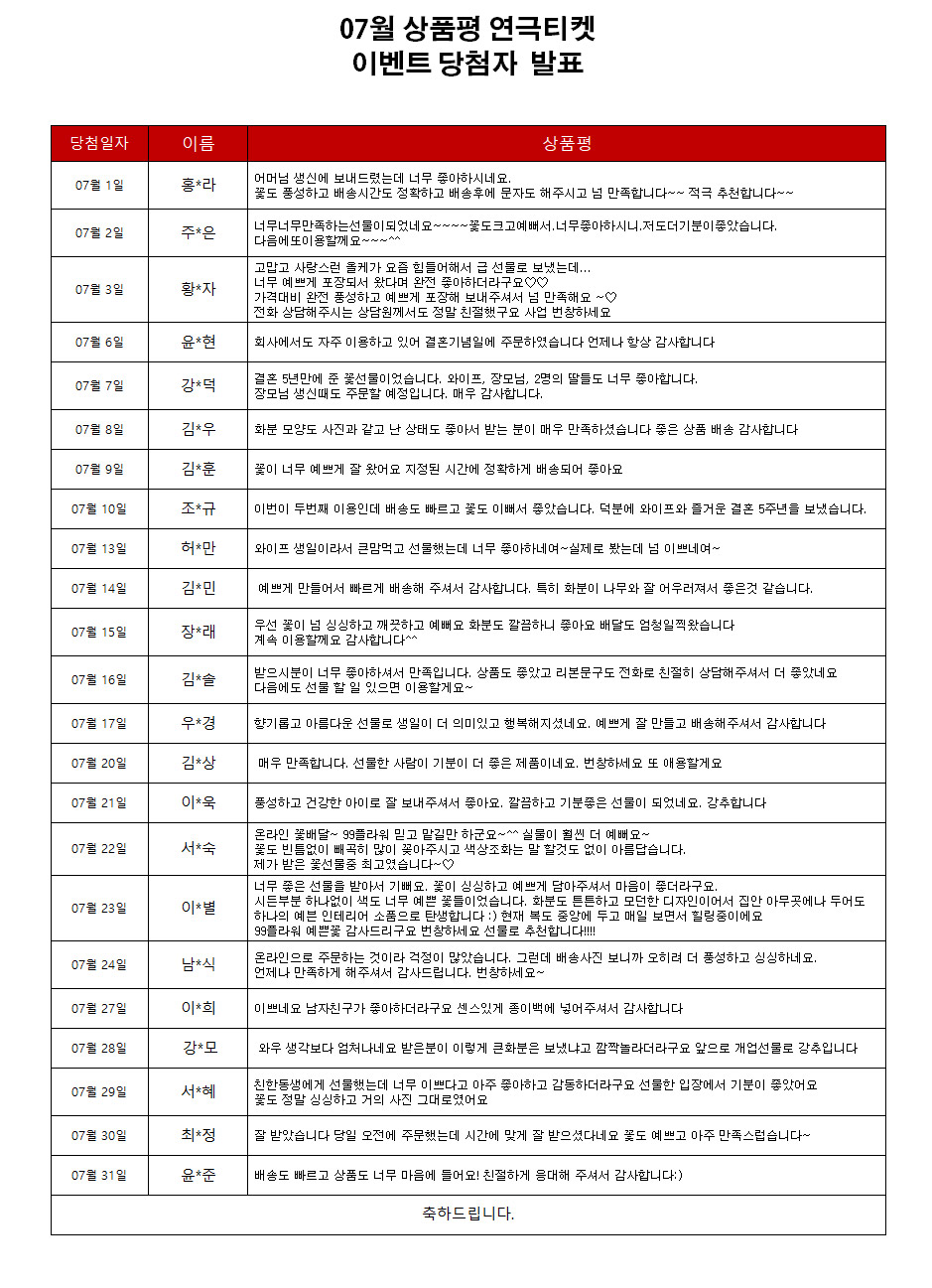 title : 2020년 07월 상품평 연극티켓 이벤트 [당첨자발표]