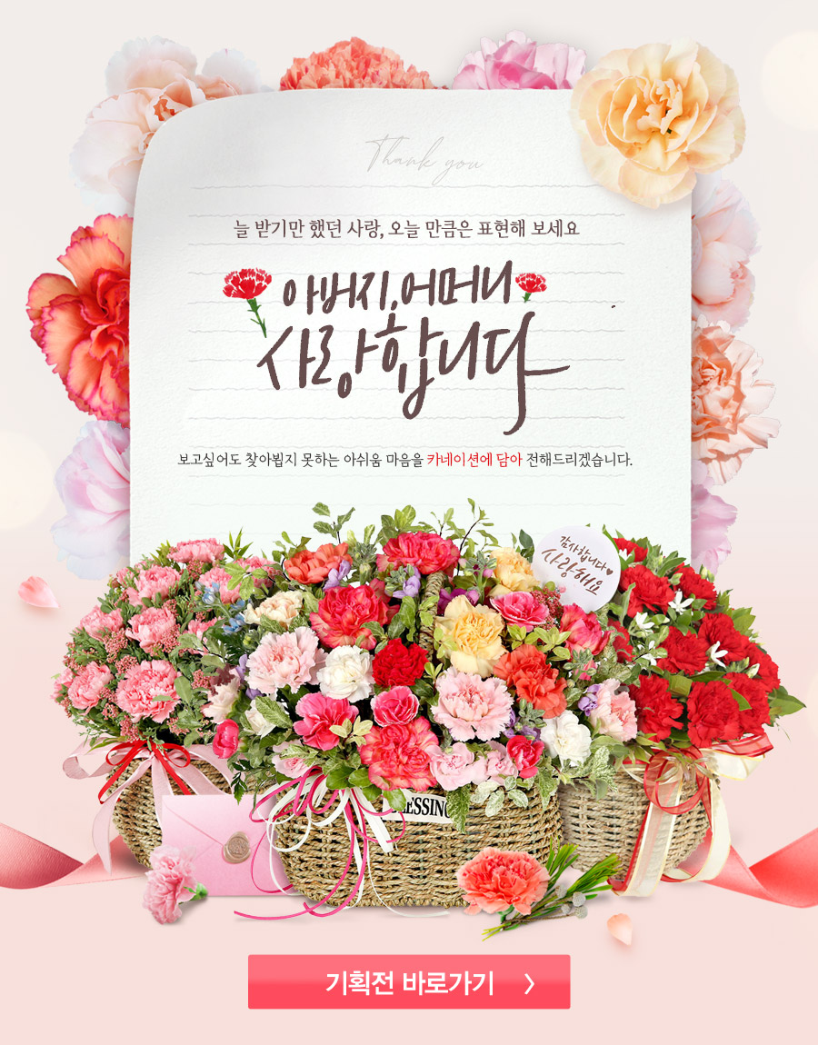 title : [ 어버이날 기획전 ] 5월 8일, 사랑하는 부모님께 찾아뵙지 못하는 아쉬운 마음을 담은 카네이션♥