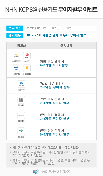 title : 2021년 8월 무이자 할부안내 [ KCP / PAYCO ]