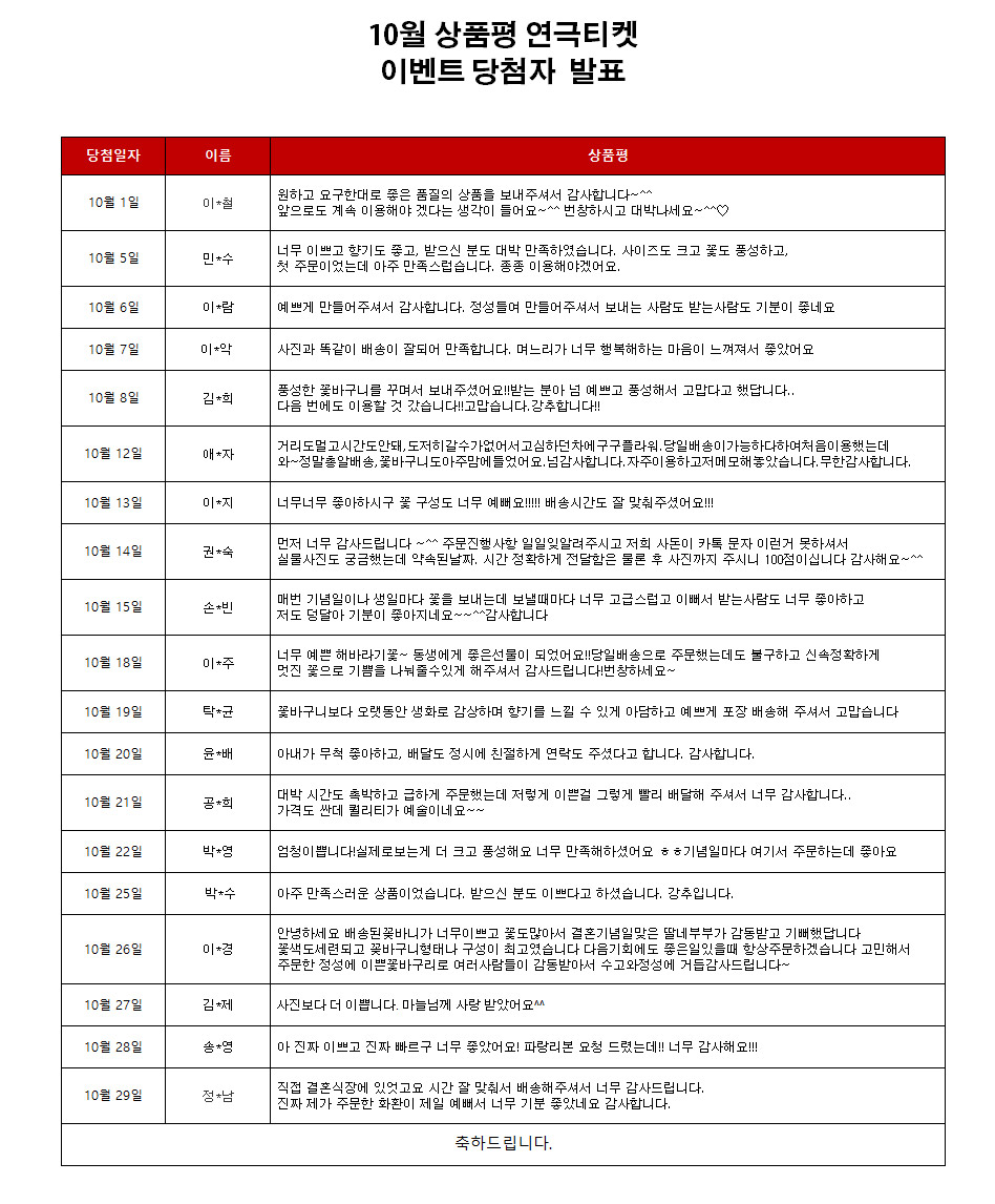 title : 2021년 10월 상품평 연극티켓 이벤트 [당첨자 발표]