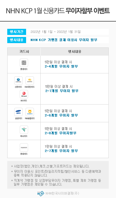 title : 2022년 1월 무이자 할부안내 [ KCP / PAYCO ]