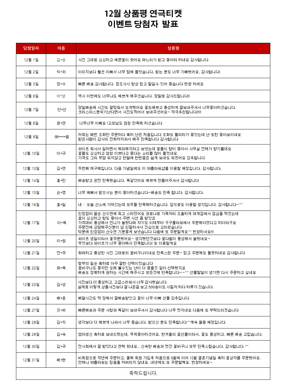 title : 2021년 12월 상품평 연극티켓 이벤트 [당첨자 발표]