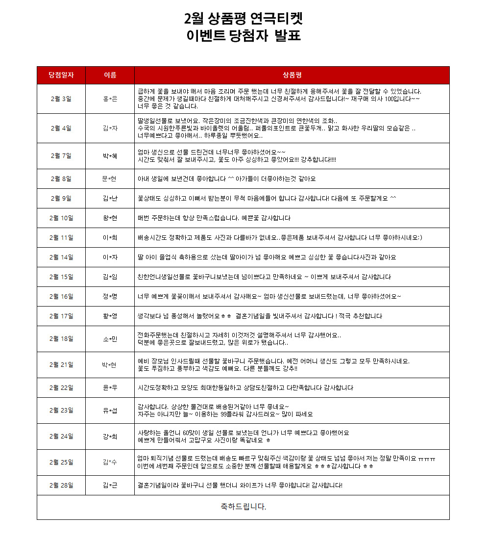 title : 2022년 2월 상품평 연극티켓 이벤트 [당첨자 발표]