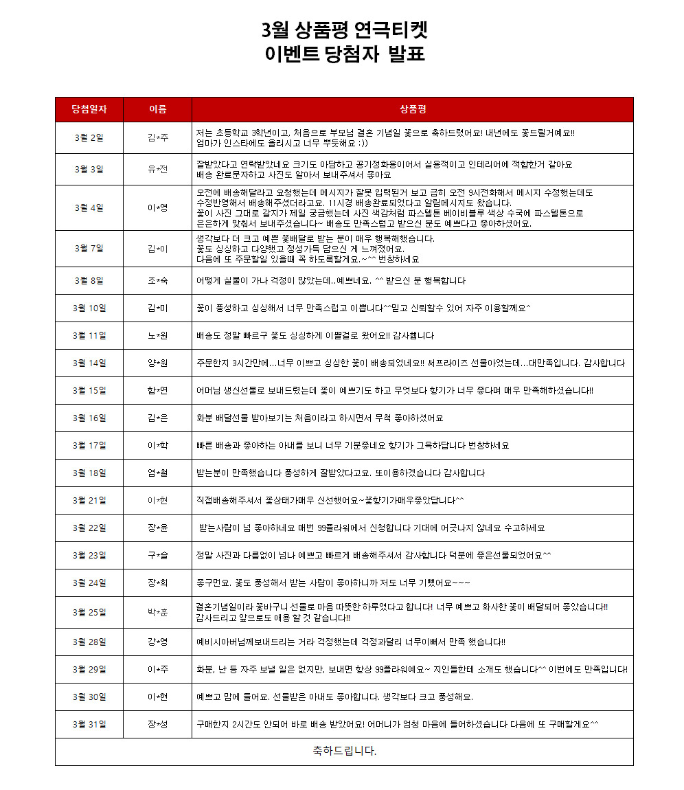 title : 2022년 3월 상품평 연극티켓 이벤트 [당첨자 발표]