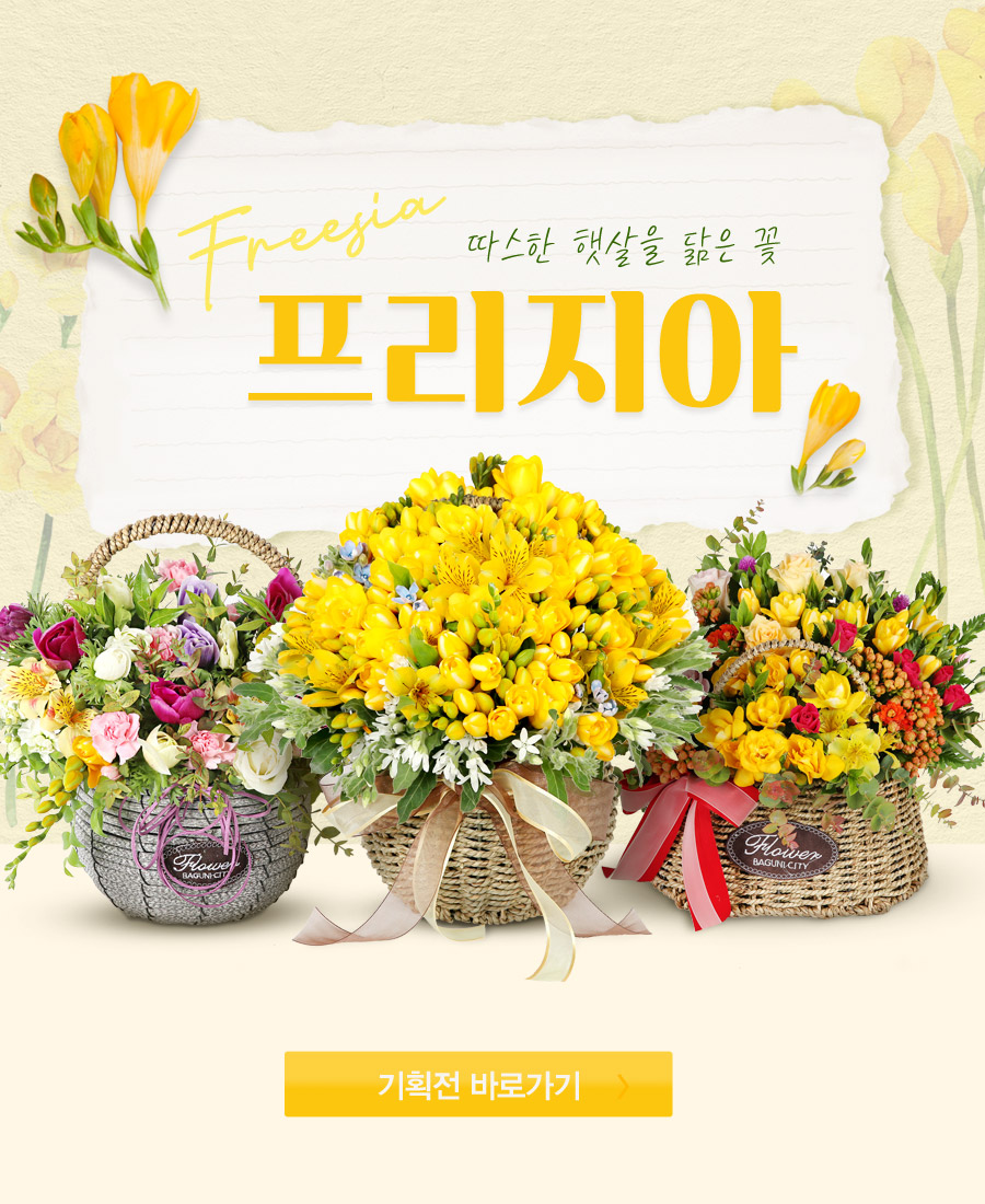 title : [ 프리지아 기획전 ] 따스한 햇살을 닮은 프리지아로 새로운 한 해를 향기롭고 화사하게 시작해보세요!