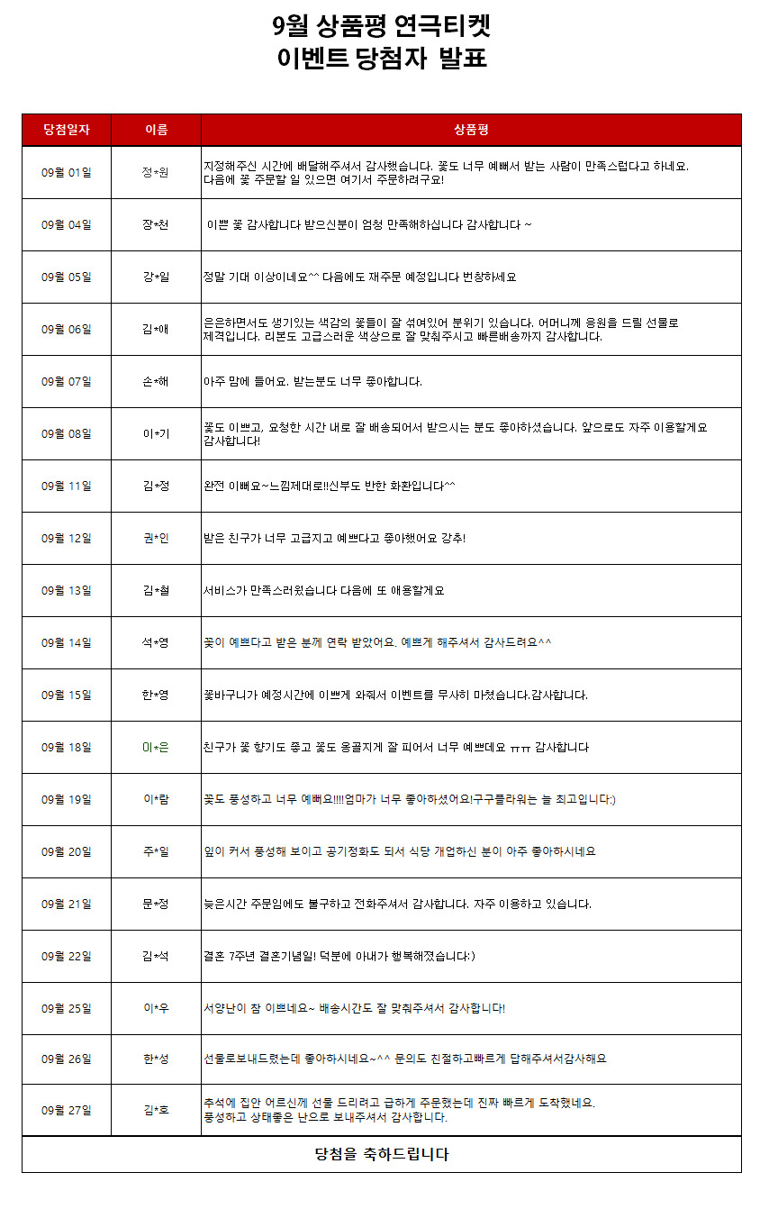 title : 2023년 9월 상품평 연극티켓 이벤트 [당첨자 발표]