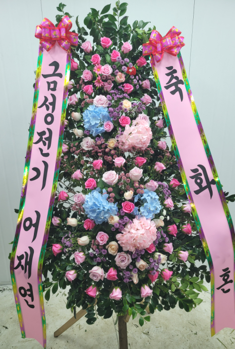 세련된 수국 축하화환 3단