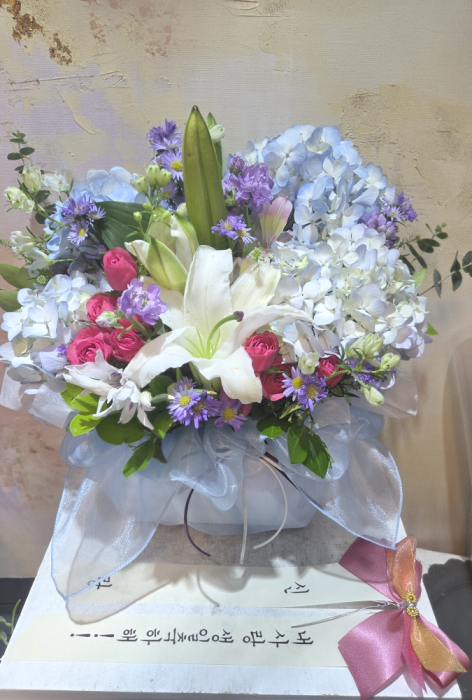고급 포장 푸른 수국바구니