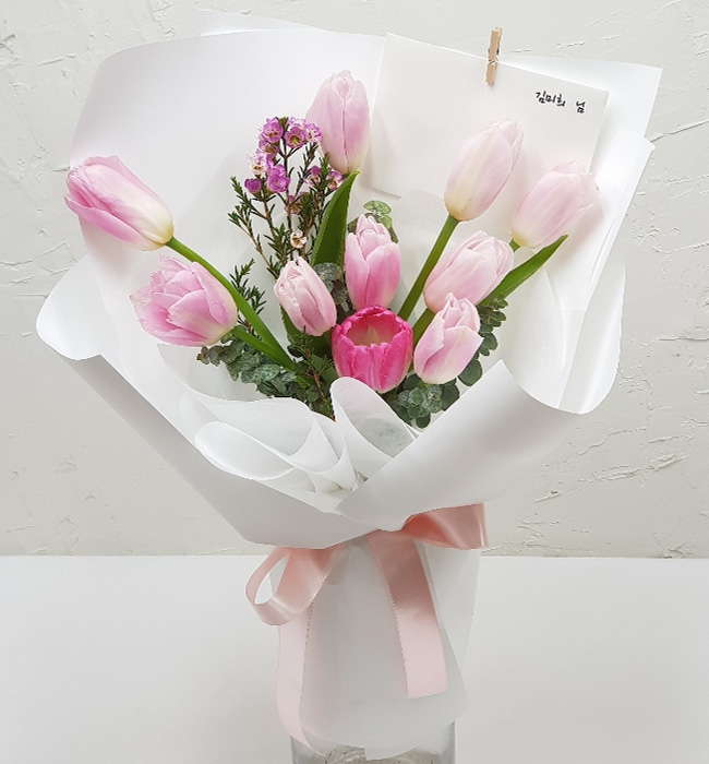 핑크 튤립 다발